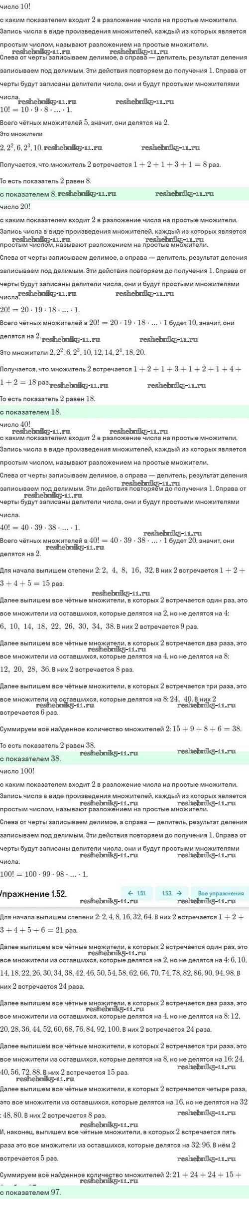 Готовая домашняя работа с ответами по Алгебре за 10 класс Мордкович, Семёнов, Звавич, Корешкова, Мишустина Задачник Базовый и углубленный уровень Мнемозина 2017 ФГОС - §1. Натуральные и целые числа 1.52