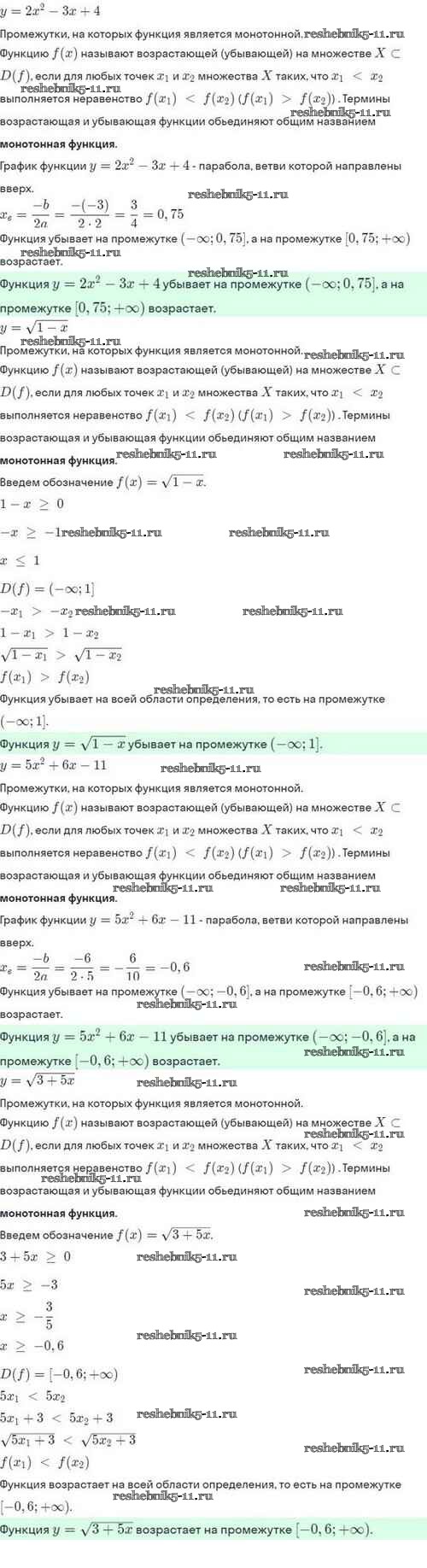 Готовая домашняя работа с ответами по Алгебре за 10 класс Мордкович, Семёнов, Звавич, Корешкова, Мишустина Задачник Базовый и углубленный уровень Мнемозина 2017 ФГОС - §8. Свойства функций 8.1