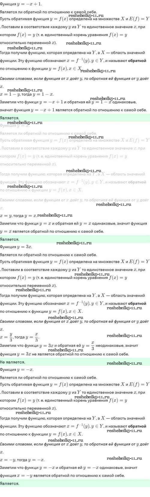 Готовая домашняя работа с ответами по Алгебре за 10 класс Мордкович, Семёнов, Звавич, Корешкова, Мишустина Задачник Базовый и углубленный уровень Мнемозина 2017 ФГОС - §10. Обратная функция 10.10