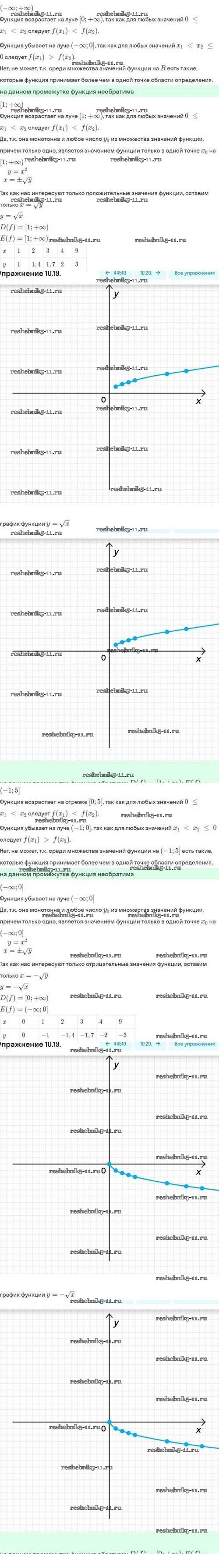 Готовая домашняя работа с ответами по Алгебре за 10 класс Мордкович, Семёнов, Звавич, Корешкова, Мишустина Задачник Базовый и углубленный уровень Мнемозина 2017 ФГОС - §10. Обратная функция 10.19