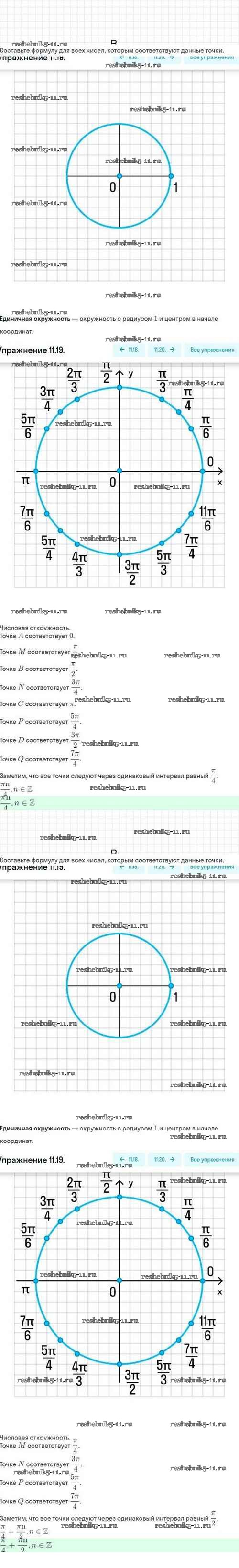 Готовая домашняя работа с ответами по Алгебре за 10 класс Мордкович, Семёнов, Звавич, Корешкова, Мишустина Задачник Базовый и углубленный уровень Мнемозина 2017 ФГОС - §11. Числовая окружность 11.19
