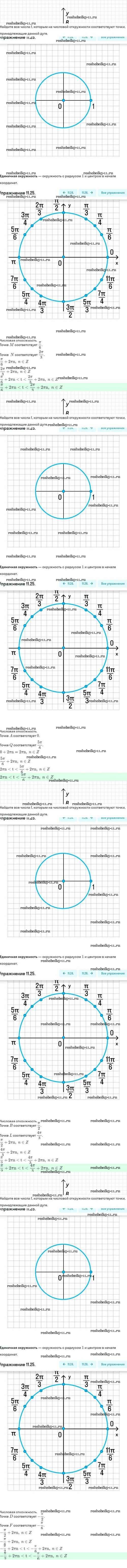 Готовая домашняя работа с ответами по Алгебре за 10 класс Мордкович, Семёнов, Звавич, Корешкова, Мишустина Задачник Базовый и углубленный уровень Мнемозина 2017 ФГОС - §11. Числовая окружность 11.25