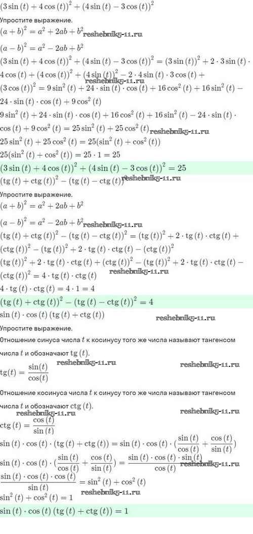 Готовая домашняя работа с ответами по Алгебре за 10 класс Мордкович, Семёнов, Звавич, Корешкова, Мишустина Задачник Базовый и углубленный уровень Мнемозина 2017 ФГОС - §14. Тригонометрические функции числового аргумента 14.10