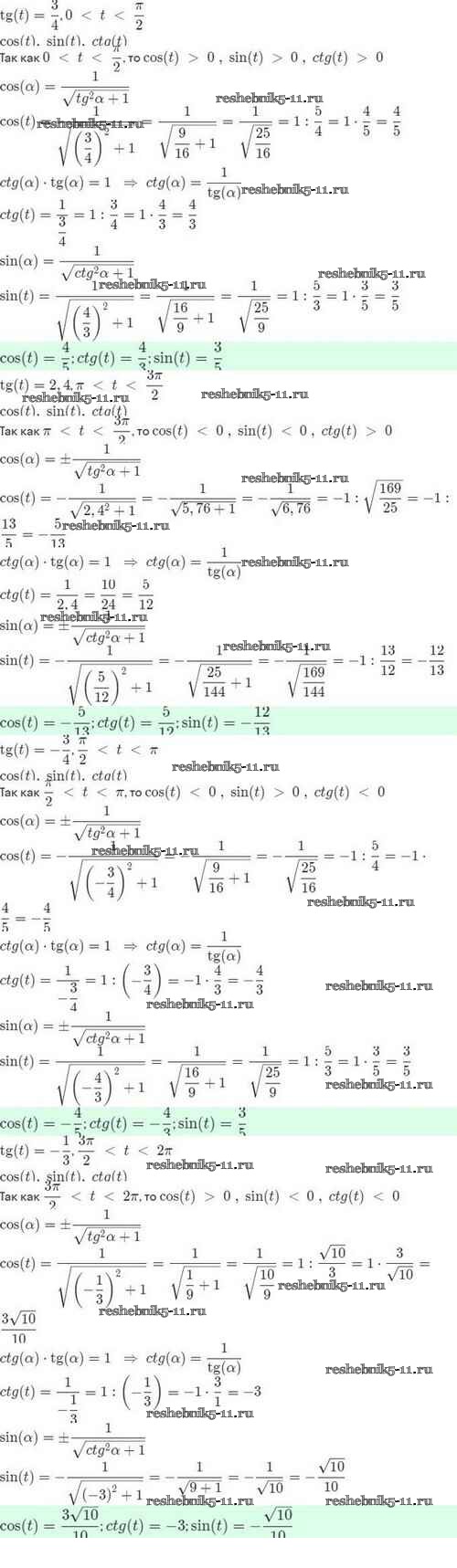 Готовая домашняя работа с ответами по Алгебре за 10 класс Мордкович, Семёнов, Звавич, Корешкова, Мишустина Задачник Базовый и углубленный уровень Мнемозина 2017 ФГОС - §14. Тригонометрические функции числового аргумента 14.16