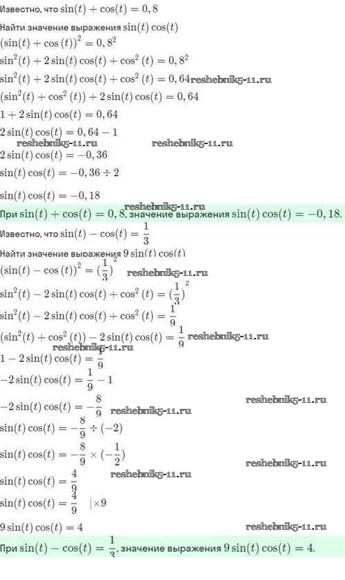 Готовая домашняя работа с ответами по Алгебре за 10 класс Мордкович, Семёнов, Звавич, Корешкова, Мишустина Задачник Базовый и углубленный уровень Мнемозина 2017 ФГОС - §14. Тригонометрические функции числового аргумента 14.20