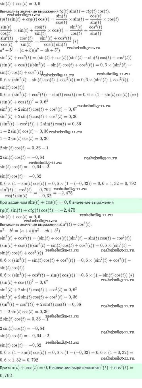 Готовая домашняя работа с ответами по Алгебре за 10 класс Мордкович, Семёнов, Звавич, Корешкова, Мишустина Задачник Базовый и углубленный уровень Мнемозина 2017 ФГОС - §14. Тригонометрические функции числового аргумента 14.21