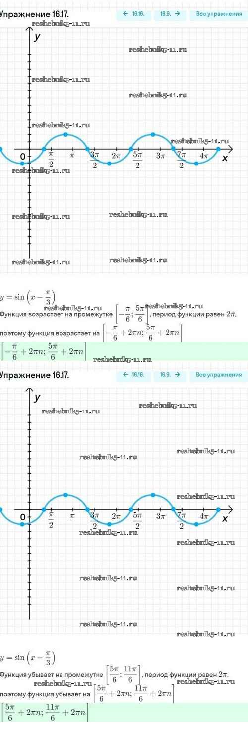 Готовая домашняя работа с ответами по Алгебре за 10 класс Мордкович, Семёнов, Звавич, Корешкова, Мишустина Задачник Базовый и углубленный уровень Мнемозина 2017 ФГОС - §16. Функции y=sinx, y=cosx, их свойства и графики 16.17