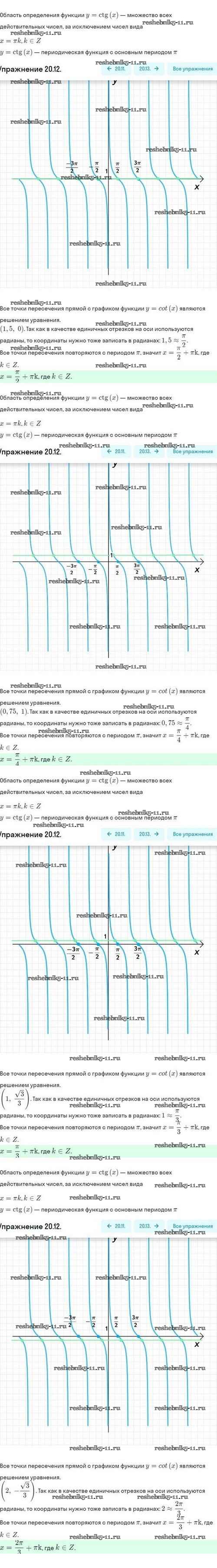 Готовая домашняя работа с ответами по Алгебре за 10 класс Мордкович, Семёнов, Звавич, Корешкова, Мишустина Задачник Базовый и углубленный уровень Мнемозина 2017 ФГОС - §20. Функции y=tgx, y=ctgx, их свойства и графики 20.12