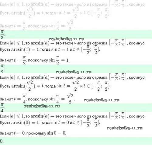 Готовая домашняя работа с ответами по Алгебре за 10 класс Мордкович, Семёнов, Звавич, Корешкова, Мишустина Задачник Базовый и углубленный уровень Мнемозина 2017 ФГОС - §21. Обратные тригонометрические функции 21.1