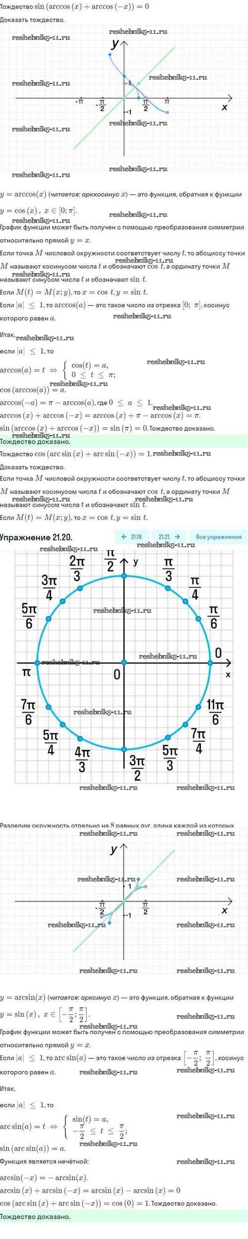 Готовая домашняя работа с ответами по Алгебре за 10 класс Мордкович, Семёнов, Звавич, Корешкова, Мишустина Задачник Базовый и углубленный уровень Мнемозина 2017 ФГОС - §21. Обратные тригонометрические функции 21.20