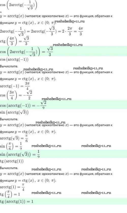 Готовая домашняя работа с ответами по Алгебре за 10 класс Мордкович, Семёнов, Звавич, Корешкова, Мишустина Задачник Базовый и углубленный уровень Мнемозина 2017 ФГОС - §21. Обратные тригонометрические функции 21.36