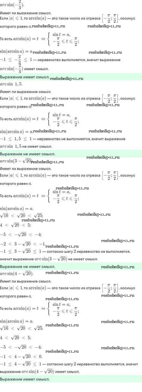 Готовая домашняя работа с ответами по Алгебре за 10 класс Мордкович, Семёнов, Звавич, Корешкова, Мишустина Задачник Базовый и углубленный уровень Мнемозина 2017 ФГОС - §21. Обратные тригонометрические функции 21.4