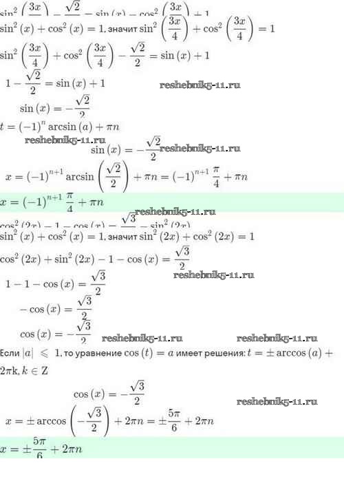 Готовая домашняя работа с ответами по Алгебре за 10 класс Мордкович, Семёнов, Звавич, Корешкова, Мишустина Задачник Базовый и углубленный уровень Мнемозина 2017 ФГОС - §22. Простейшие тригонометрические уравнения и неравенства 22.11