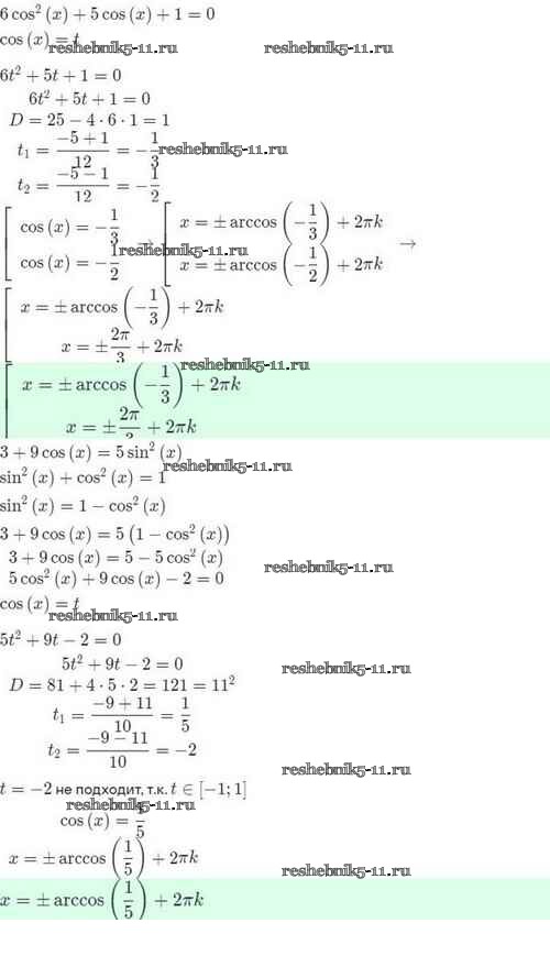 Готовая домашняя работа с ответами по Алгебре за 10 класс Мордкович, Семёнов, Звавич, Корешкова, Мишустина Задачник Базовый и углубленный уровень Мнемозина 2017 ФГОС - §22. Простейшие тригонометрические уравнения и неравенства 22.5