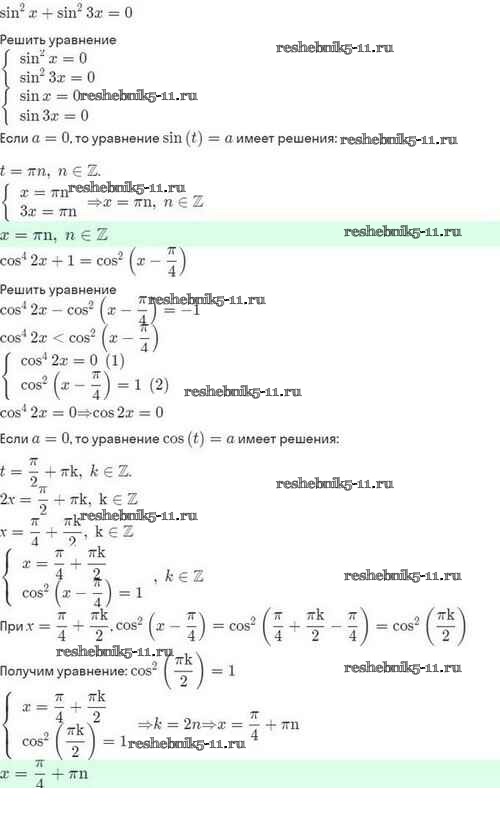 Готовая домашняя работа с ответами по Алгебре за 10 класс Мордкович, Семёнов, Звавич, Корешкова, Мишустина Задачник Базовый и углубленный уровень Мнемозина 2017 ФГОС - §22. Простейшие тригонометрические уравнения и неравенства 22.62