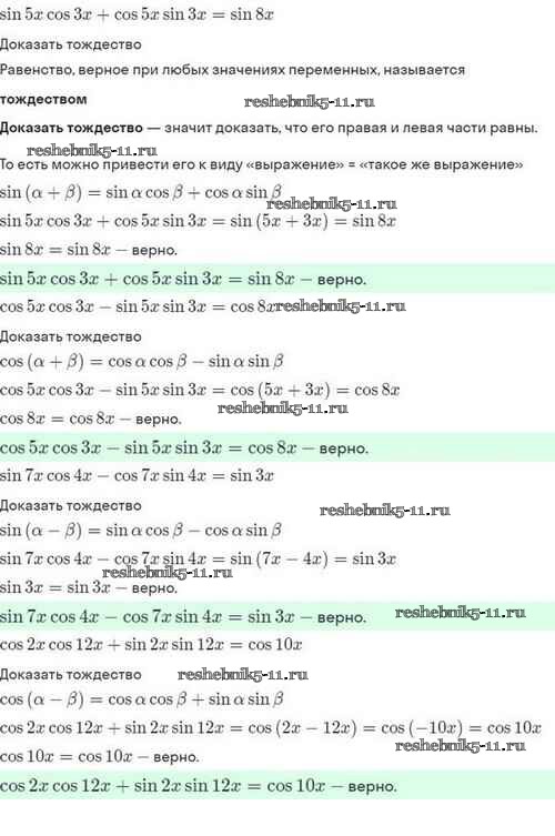 Готовая домашняя работа с ответами по Алгебре за 10 класс Мордкович, Семёнов, Звавич, Корешкова, Мишустина Задачник Базовый и углубленный уровень Мнемозина 2017 ФГОС - §24. Синус и косинус суммы и разности аргументов 24.10