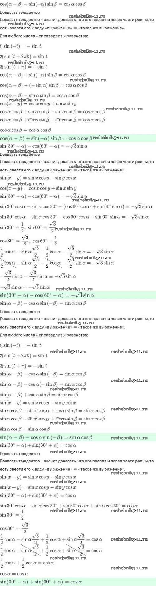 Готовая домашняя работа с ответами по Алгебре за 10 класс Мордкович, Семёнов, Звавич, Корешкова, Мишустина Задачник Базовый и углубленный уровень Мнемозина 2017 ФГОС - §24. Синус и косинус суммы и разности аргументов 24.11
