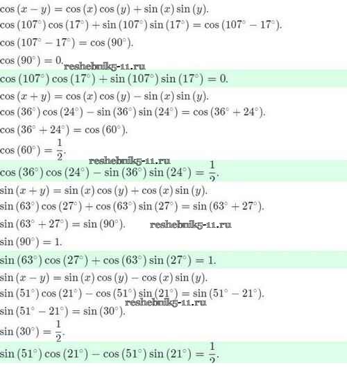 Готовая домашняя работа с ответами по Алгебре за 10 класс Мордкович, Семёнов, Звавич, Корешкова, Мишустина Задачник Базовый и углубленный уровень Мнемозина 2017 ФГОС - §24. Синус и косинус суммы и разности аргументов 24.17