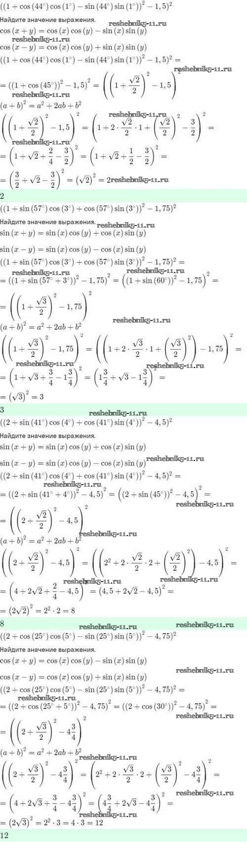 Готовая домашняя работа с ответами по Алгебре за 10 класс Мордкович, Семёнов, Звавич, Корешкова, Мишустина Задачник Базовый и углубленный уровень Мнемозина 2017 ФГОС - §24. Синус и косинус суммы и разности аргументов 24.20