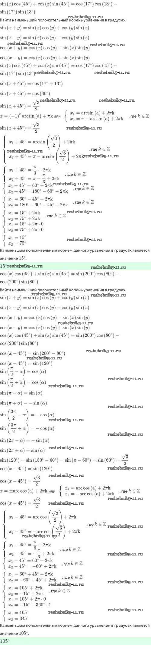 Готовая домашняя работа с ответами по Алгебре за 10 класс Мордкович, Семёнов, Звавич, Корешкова, Мишустина Задачник Базовый и углубленный уровень Мнемозина 2017 ФГОС - §24. Синус и косинус суммы и разности аргументов 24.22