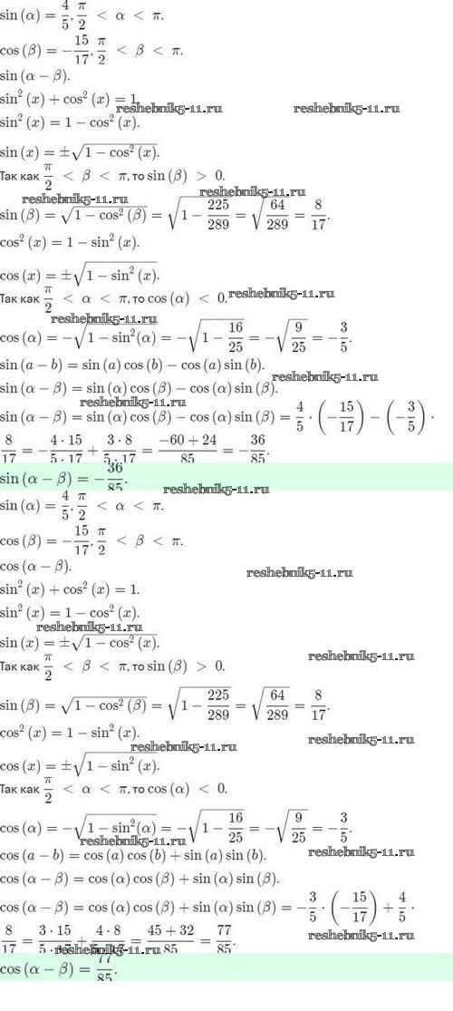 Готовая домашняя работа с ответами по Алгебре за 10 класс Мордкович, Семёнов, Звавич, Корешкова, Мишустина Задачник Базовый и углубленный уровень Мнемозина 2017 ФГОС - §24. Синус и косинус суммы и разности аргументов 24.35
