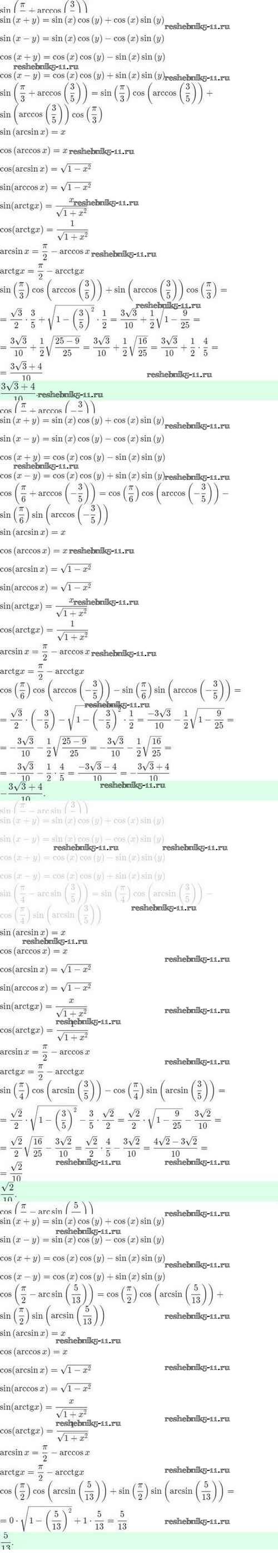 Готовая домашняя работа с ответами по Алгебре за 10 класс Мордкович, Семёнов, Звавич, Корешкова, Мишустина Задачник Базовый и углубленный уровень Мнемозина 2017 ФГОС - §24. Синус и косинус суммы и разности аргументов 24.49