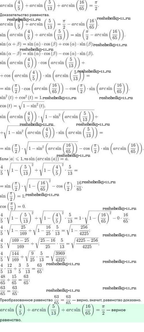 Готовая домашняя работа с ответами по Алгебре за 10 класс Мордкович, Семёнов, Звавич, Корешкова, Мишустина Задачник Базовый и углубленный уровень Мнемозина 2017 ФГОС - §24. Синус и косинус суммы и разности аргументов 24.53