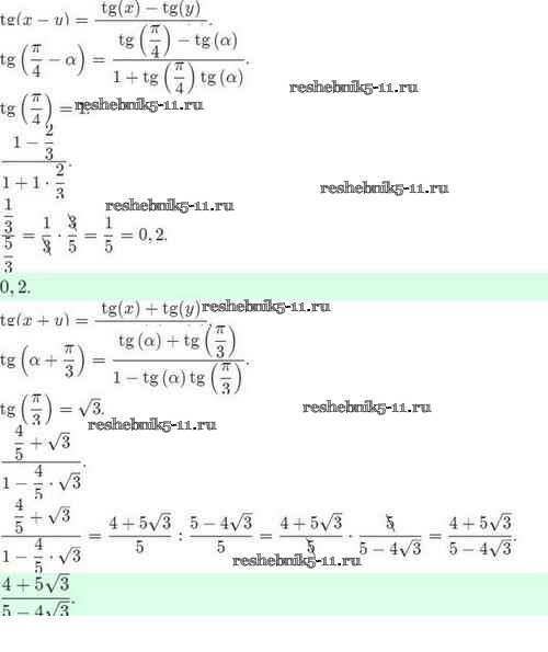 Готовая домашняя работа с ответами по Алгебре за 10 класс Мордкович, Семёнов, Звавич, Корешкова, Мишустина Задачник Базовый и углубленный уровень Мнемозина 2017 ФГОС - §25. Тангенс суммы и разности аргументов 25.10