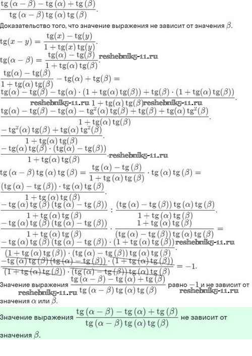 Готовая домашняя работа с ответами по Алгебре за 10 класс Мордкович, Семёнов, Звавич, Корешкова, Мишустина Задачник Базовый и углубленный уровень Мнемозина 2017 ФГОС - §25. Тангенс суммы и разности аргументов 25.9