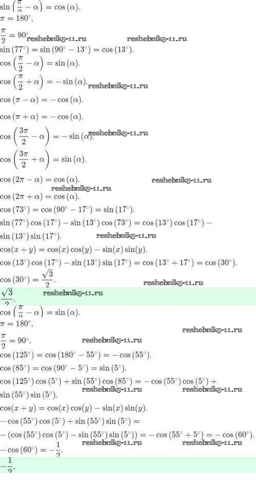 Готовая домашняя работа с ответами по Алгебре за 10 класс Мордкович, Семёнов, Звавич, Корешкова, Мишустина Задачник Базовый и углубленный уровень Мнемозина 2017 ФГОС - §26. Формулы приведения 26.16