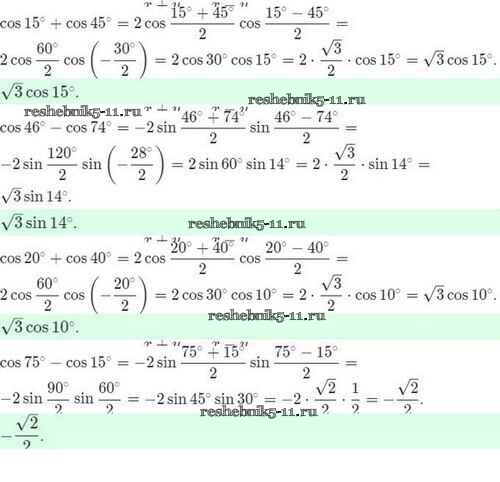 Готовая домашняя работа с ответами по Алгебре за 10 класс Мордкович, Семёнов, Звавич, Корешкова, Мишустина Задачник Базовый и углубленный уровень Мнемозина 2017 ФГОС - §28. Преобразование суммы тригонометрических функций в произведение 28.2