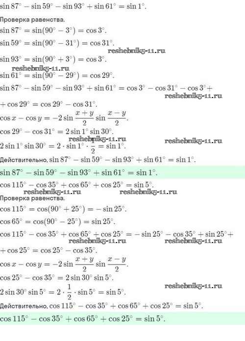 Готовая домашняя работа с ответами по Алгебре за 10 класс Мордкович, Семёнов, Звавич, Корешкова, Мишустина Задачник Базовый и углубленный уровень Мнемозина 2017 ФГОС - §28. Преобразование суммы тригонометрических функций в произведение 28.20