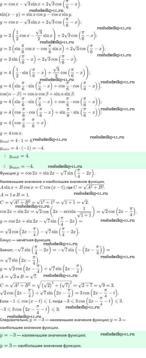 Готовая домашняя работа с ответами по Алгебре за 10 класс Мордкович, Семёнов, Звавич, Корешкова, Мишустина Задачник Базовый и углубленный уровень Мнемозина 2017 ФГОС - §30. Преобразование выражения Asinx+Bcosx к виду Csin(x+t) 30.11