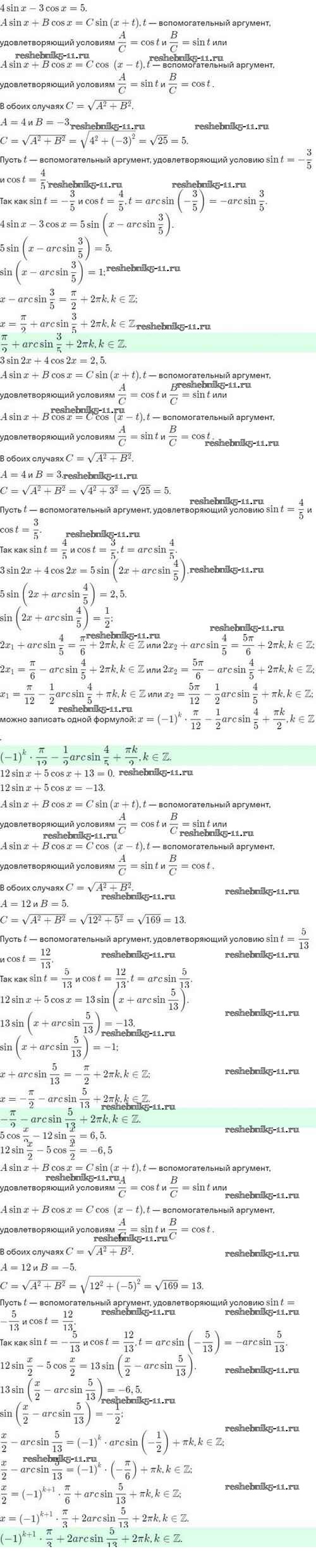 Готовая домашняя работа с ответами по Алгебре за 10 класс Мордкович, Семёнов, Звавич, Корешкова, Мишустина Задачник Базовый и углубленный уровень Мнемозина 2017 ФГОС - §30. Преобразование выражения Asinx+Bcosx к виду Csin(x+t) 30.17