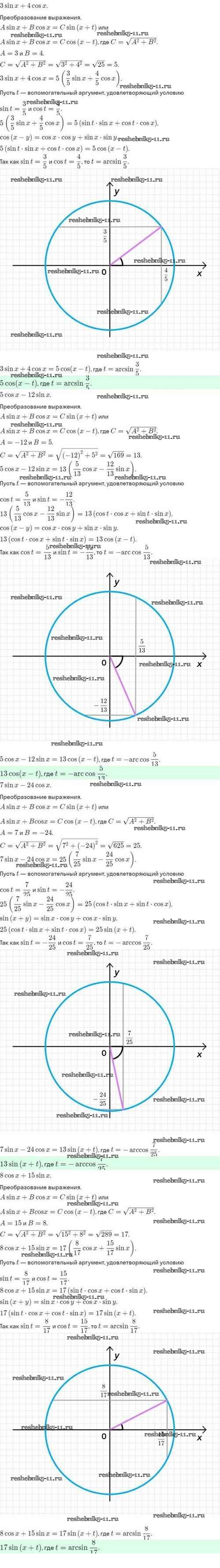 Готовая домашняя работа с ответами по Алгебре за 10 класс Мордкович, Семёнов, Звавич, Корешкова, Мишустина Задачник Базовый и углубленный уровень Мнемозина 2017 ФГОС - §30. Преобразование выражения Asinx+Bcosx к виду Csin(x+t) 30.2