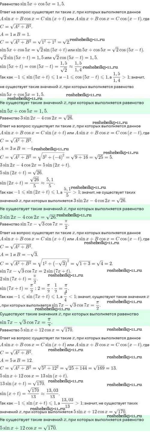Готовая домашняя работа с ответами по Алгебре за 10 класс Мордкович, Семёнов, Звавич, Корешкова, Мишустина Задачник Базовый и углубленный уровень Мнемозина 2017 ФГОС - §30. Преобразование выражения Asinx+Bcosx к виду Csin(x+t) 30.8