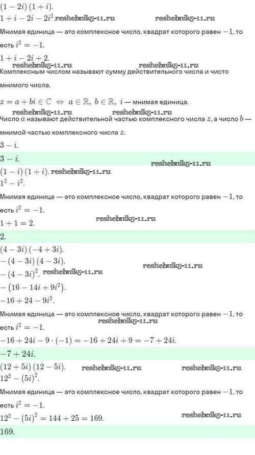 Готовая домашняя работа с ответами по Алгебре за 10 класс Мордкович, Семёнов, Звавич, Корешкова, Мишустина Задачник Базовый и углубленный уровень Мнемозина 2017 ФГОС - §32. Комплексные числа и арифметические операции над ними 32.20