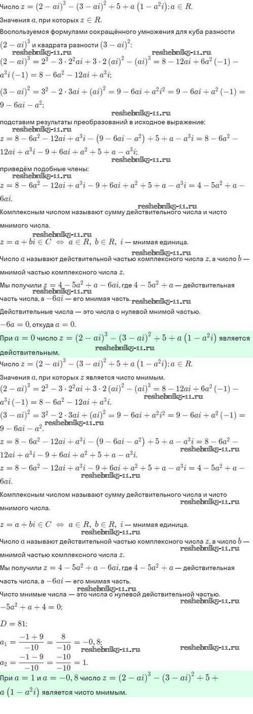 Готовая домашняя работа с ответами по Алгебре за 10 класс Мордкович, Семёнов, Звавич, Корешкова, Мишустина Задачник Базовый и углубленный уровень Мнемозина 2017 ФГОС - §32. Комплексные числа и арифметические операции над ними 32.31