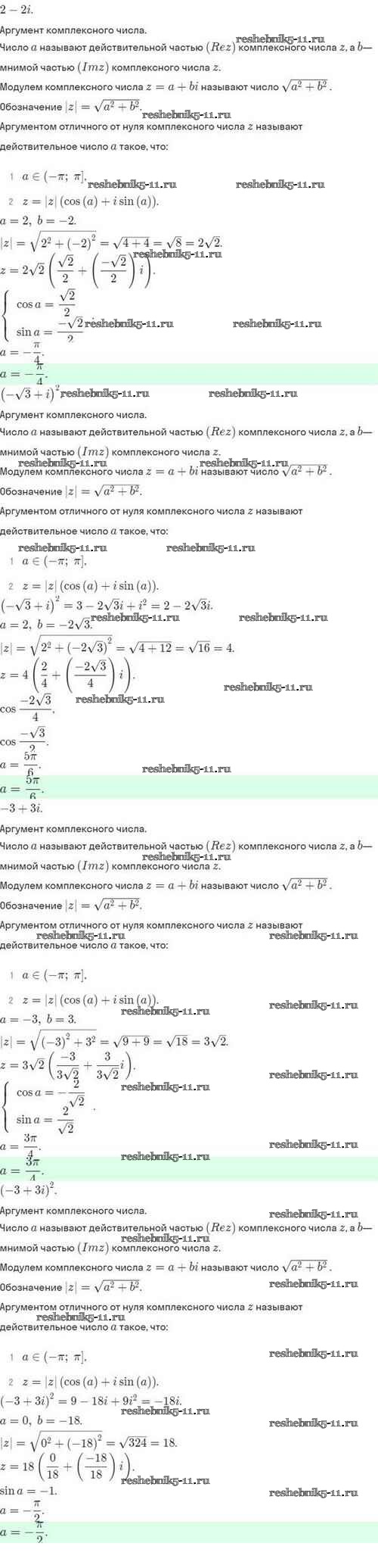 Готовая домашняя работа с ответами по Алгебре за 10 класс Мордкович, Семёнов, Звавич, Корешкова, Мишустина Задачник Базовый и углубленный уровень Мнемозина 2017 ФГОС - §34. Тригонометрическая формула записи комплексного числа 34.15