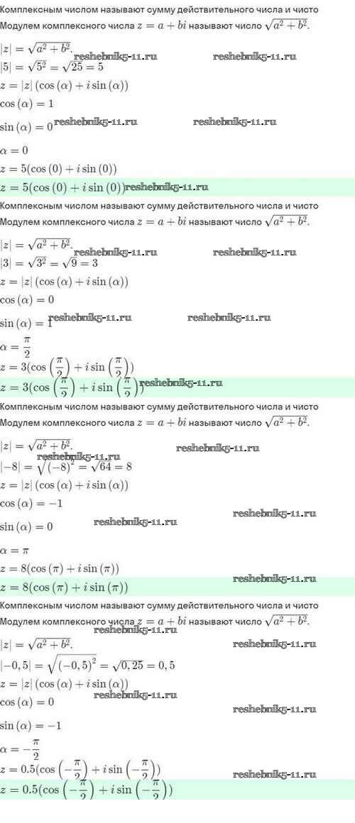 Готовая домашняя работа с ответами по Алгебре за 10 класс Мордкович, Семёнов, Звавич, Корешкова, Мишустина Задачник Базовый и углубленный уровень Мнемозина 2017 ФГОС - §34. Тригонометрическая формула записи комплексного числа 34.21