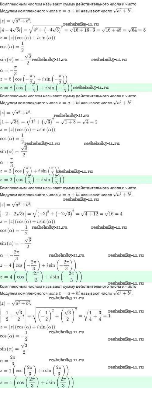 Готовая домашняя работа с ответами по Алгебре за 10 класс Мордкович, Семёнов, Звавич, Корешкова, Мишустина Задачник Базовый и углубленный уровень Мнемозина 2017 ФГОС - §34. Тригонометрическая формула записи комплексного числа 34.24
