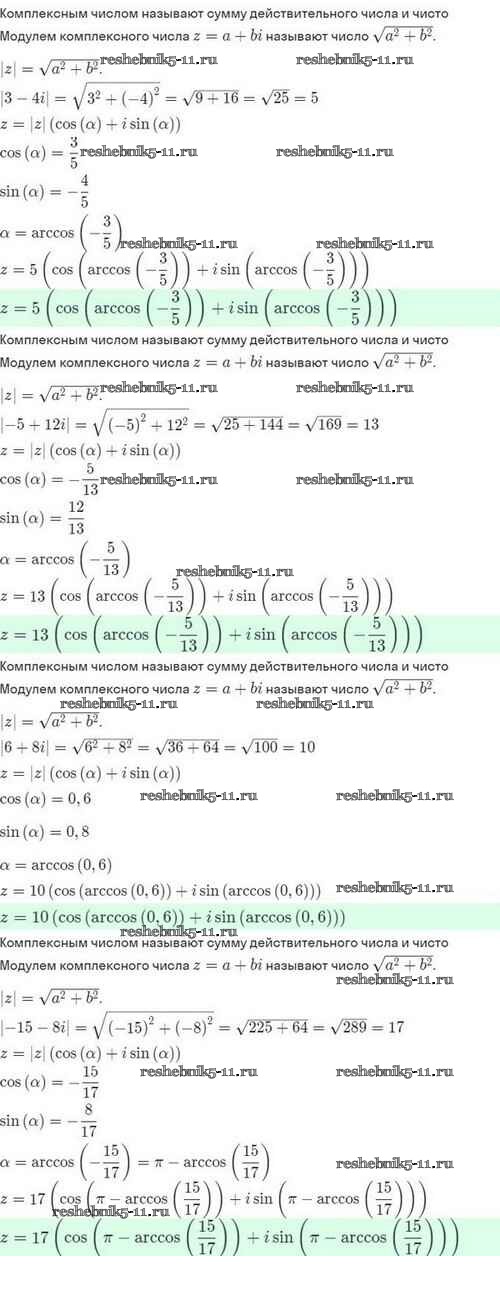 Готовая домашняя работа с ответами по Алгебре за 10 класс Мордкович, Семёнов, Звавич, Корешкова, Мишустина Задачник Базовый и углубленный уровень Мнемозина 2017 ФГОС - §34. Тригонометрическая формула записи комплексного числа 34.25