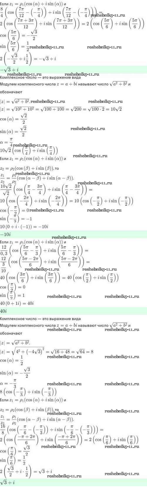 Готовая домашняя работа с ответами по Алгебре за 10 класс Мордкович, Семёнов, Звавич, Корешкова, Мишустина Задачник Базовый и углубленный уровень Мнемозина 2017 ФГОС - §34. Тригонометрическая формула записи комплексного числа 34.30