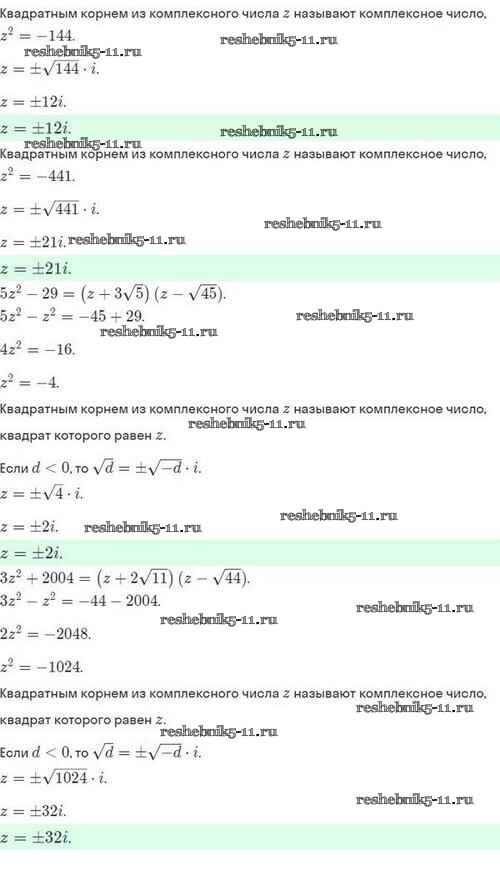 Готовая домашняя работа с ответами по Алгебре за 10 класс Мордкович, Семёнов, Звавич, Корешкова, Мишустина Задачник Базовый и углубленный уровень Мнемозина 2017 ФГОС - §35. Комплексные числа и квадратные уравнения 35.4