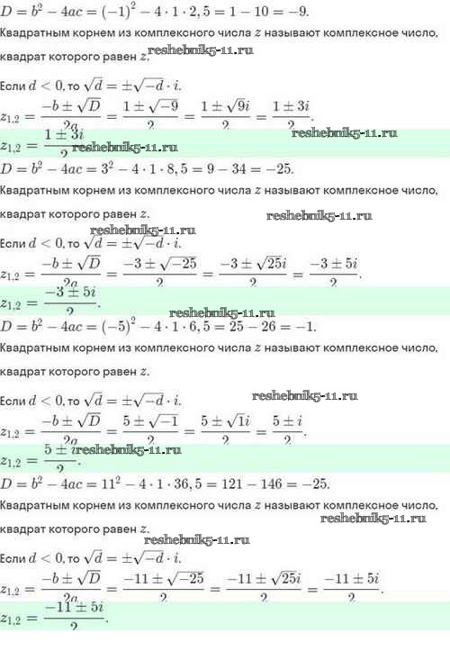 Готовая домашняя работа с ответами по Алгебре за 10 класс Мордкович, Семёнов, Звавич, Корешкова, Мишустина Задачник Базовый и углубленный уровень Мнемозина 2017 ФГОС - §35. Комплексные числа и квадратные уравнения 35.8