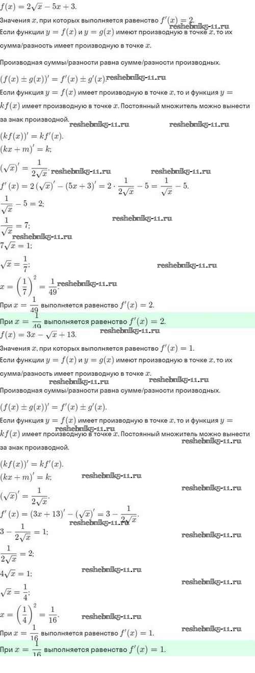 Готовая домашняя работа с ответами по Алгебре за 10 класс Мордкович, Семёнов, Звавич, Корешкова, Мишустина Задачник Базовый и углубленный уровень Мнемозина 2017 ФГОС - §41. Вычисление производных 41.48