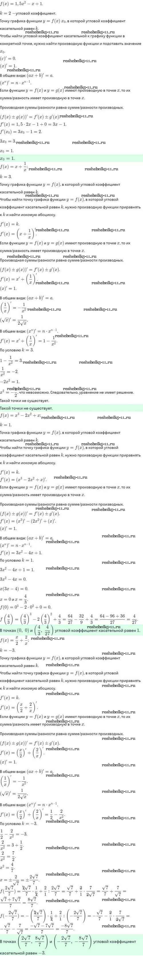 Готовая домашняя работа с ответами по Алгебре за 10 класс Мордкович, Семёнов, Звавич, Корешкова, Мишустина Задачник Базовый и углубленный уровень Мнемозина 2017 ФГОС - §43. Уравнение касательной к графику функции 43.12