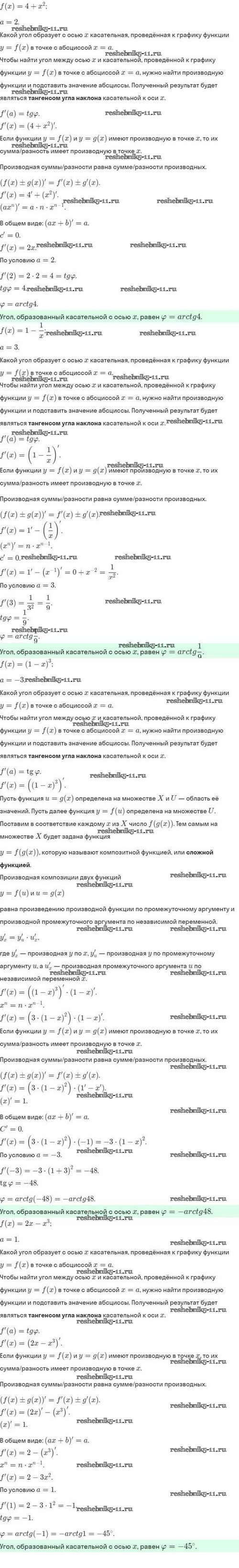 Готовая домашняя работа с ответами по Алгебре за 10 класс Мордкович, Семёнов, Звавич, Корешкова, Мишустина Задачник Базовый и углубленный уровень Мнемозина 2017 ФГОС - §43. Уравнение касательной к графику функции 43.14