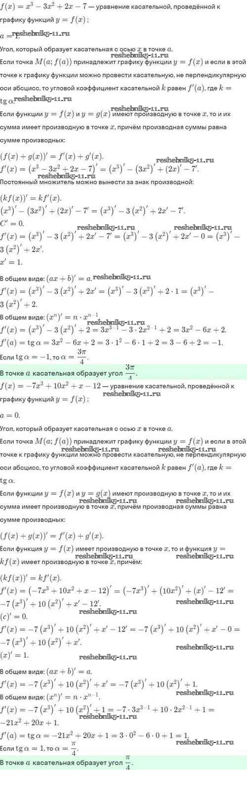 Готовая домашняя работа с ответами по Алгебре за 10 класс Мордкович, Семёнов, Звавич, Корешкова, Мишустина Задачник Базовый и углубленный уровень Мнемозина 2017 ФГОС - §43. Уравнение касательной к графику функции 43.16