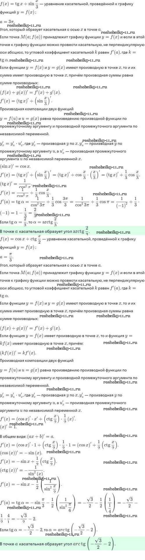 Готовая домашняя работа с ответами по Алгебре за 10 класс Мордкович, Семёнов, Звавич, Корешкова, Мишустина Задачник Базовый и углубленный уровень Мнемозина 2017 ФГОС - §43. Уравнение касательной к графику функции 43.20